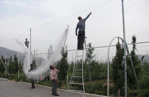 2、拉锚固定在地面上,这样能够包管立柱结实安稳。葡萄果园尼龙防鸟网架起要将横向纵向用铁丝连接成一个个的网格,将铁丝的两端固定好之后,要用紧线器将铁丝拉紧,然后固定,下一步就能够架网了。