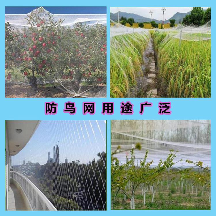 4、使用年限:尼龙防鸟网耐老化能用5年以上,聚乙烯防鸟网能用2年左右。